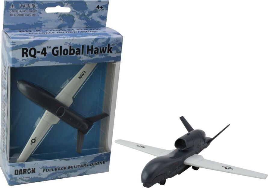 Introducing the RQ-4 Global Hawk Military Drone – a speedy delight for all ages! Just pull back to see this sleek toy zoom forward. Complete with realistic details and rubberized wheels. Suitable for ages 4+.